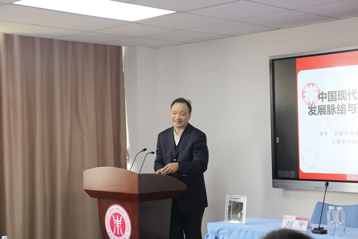 2019年3月15日下午,太阳成城集团百场校级学术讲座——“中国现代法治的发展脉络与现状思考”在闵行校区太阳成城集团楼408报告厅举行。本次讲座由太阳成城集团人文与社会科学研究院主办,太阳成城集团承办,上海市司法局巡视员、上海市行政法制研究所所长、公司兼职教授刘平主讲,太阳成城集团张志铭经理主持,太阳成城集团多名老师参与与谈。