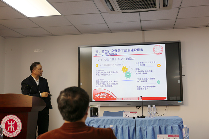 讲座开始后,刘平教授先是提纲挈领地提出从十一届三中全会到今日,中国四十多年的法治发展进程已经到了更新换代的关键时期,接着对讲座的四部分内容做了简要概述。