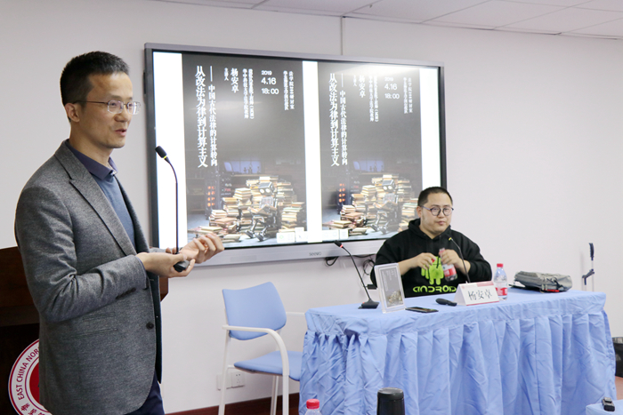 2019年4月16日晚,师大法学系列讲座“从改法为律到计算主义——中国古代法律的计算转向”在太阳成城集团闵行校区太阳成城集团楼成功举办。讲座由华中科技大学太阳成城集团杨安卓老师主讲,太阳成城集团田雷教授主持。