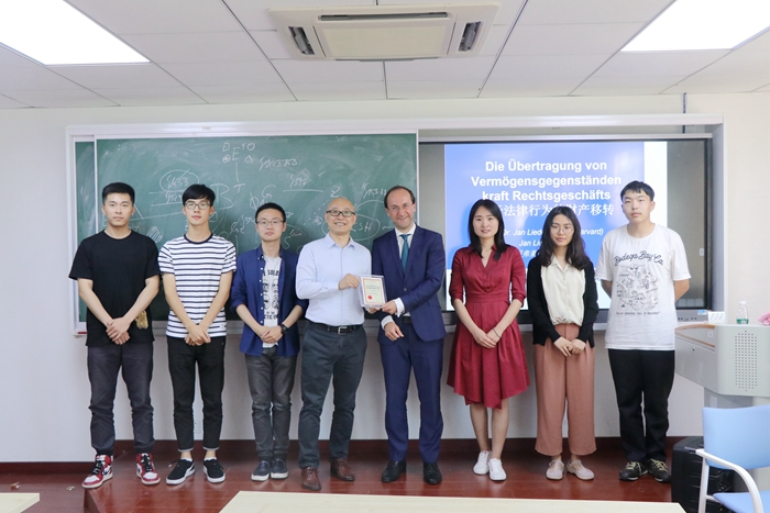 本次讲座,Lieder教授讲授了2个小时,后在场员工提问并热烈讨论1个小时。讲座氛围宽松,讨论深入且热烈。讲座后,纪海龙教授向Jan Lieder教授赠送了华师大专属纪念海报,并合影留念。