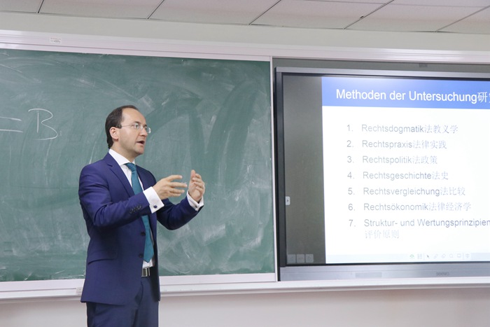 然后,Lieder介绍了其研究的缘起和意义。他的研究背景是欧洲私法的一体化、财产移转的经济意义以及目前民法学理论对于在体系上统一观察各种财产移转存在的研究空白。Lieder教授是从体系统合的视角,来对历史上产生时间不同的各种财产移转形态进行整体研究,提炼出一般性的财产移转原则。Lieder教授也指出,其研究方法是多元的,综合运用了法教义学、法律实践研究、法政策学、法史、比较法、法律经济学等方法。