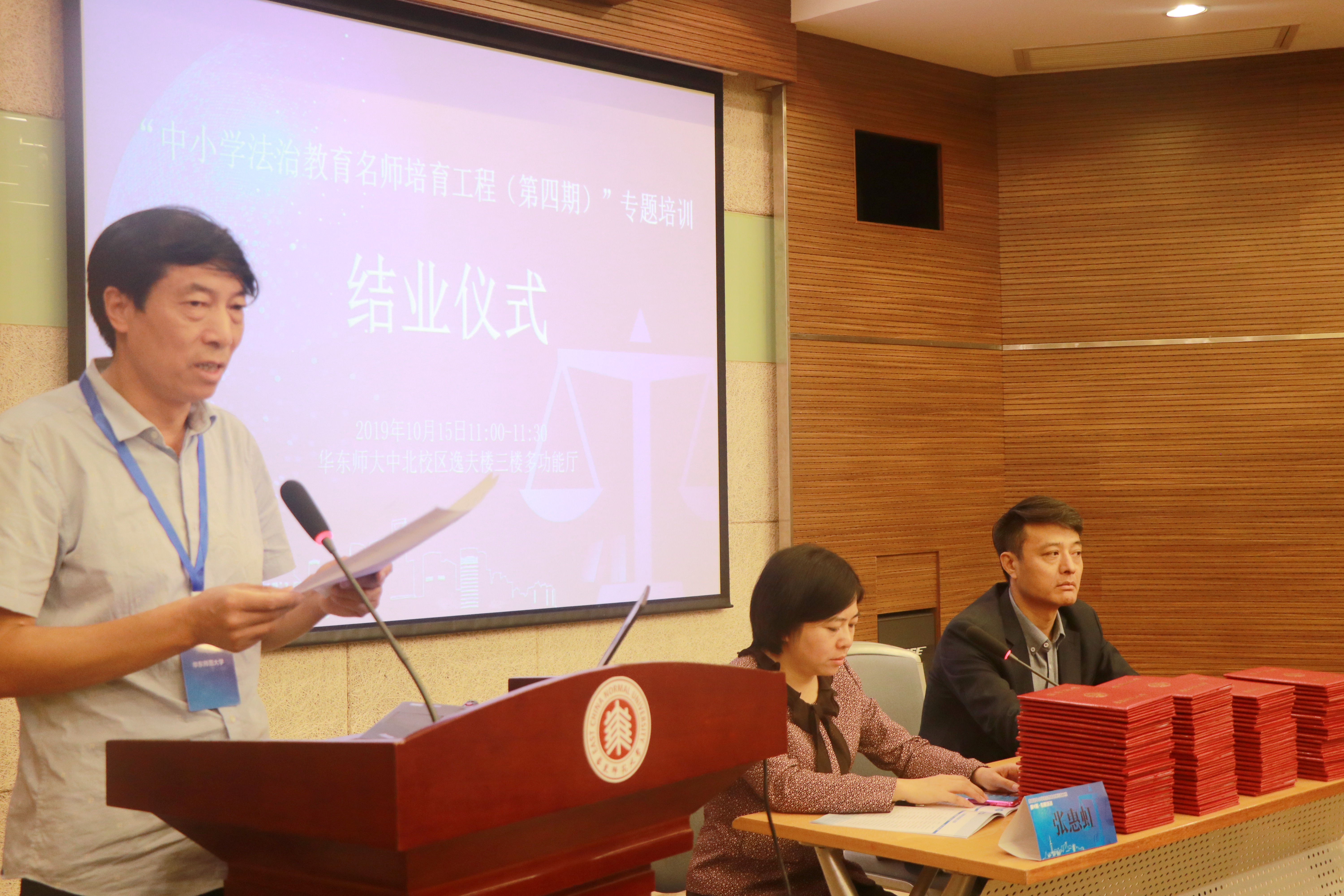 10月9日-15日,受教育部全国教育普法领导小组办公室委托,由华东师大青少年法治教育协同创新中心承办的“中小学法治教育名师培育工程(第四期)”专题培训在华东师大举行。来自全国各省市的百名中小学法治教育名师在校接受为期一周的专题培训。