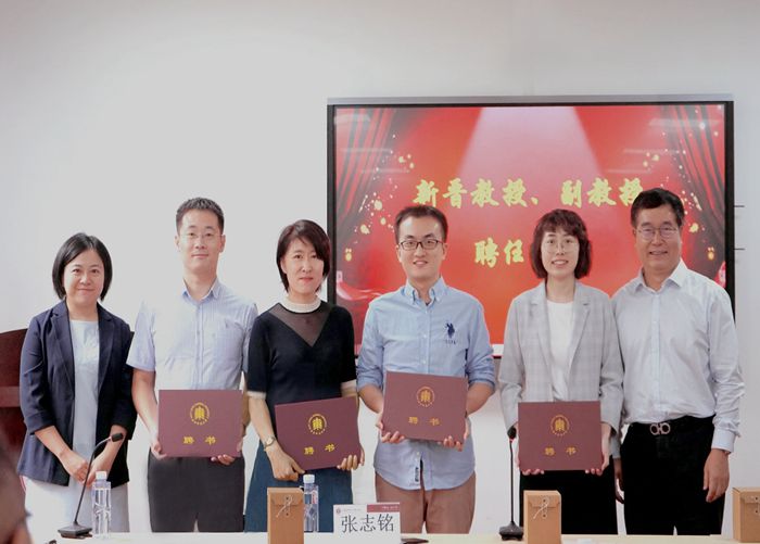 接着,学院为新晋教授、副教授举行了简短而隆重的聘任仪式,张志铭经理向新晋教授凌维慈,副教授孙立红、王军、李帅、李建星、王美舒、沈灏颁发了聘书。