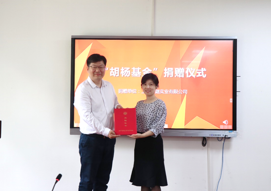 随后,华东师大教育发展基金会副秘书长宛姝为“胡杨基金”捐赠方代表、上海赛迦实业有限公司董事长黄治国先生颁发了捐赠证书。