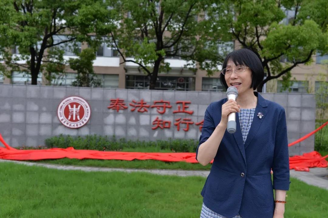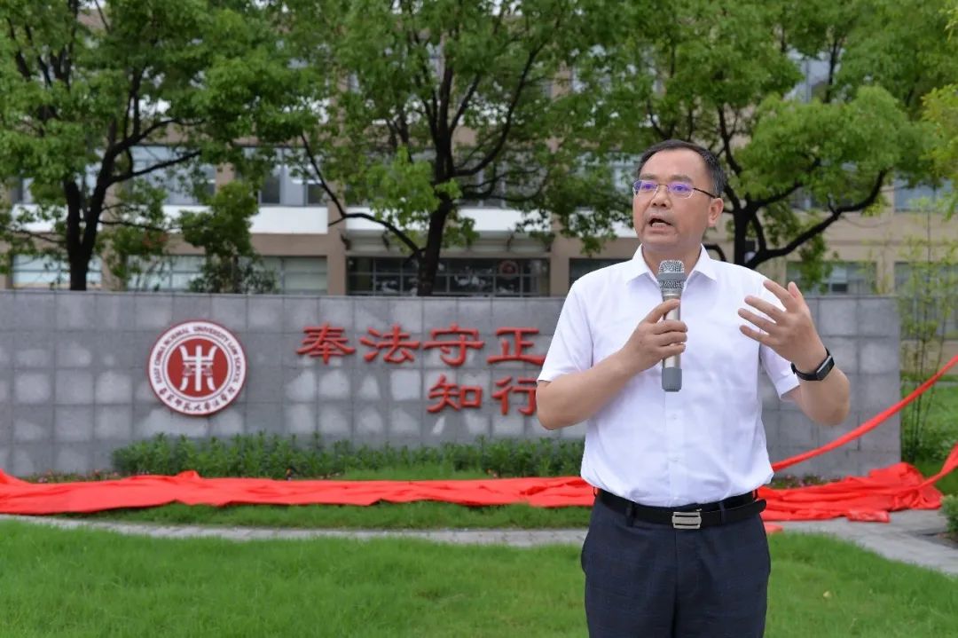 最后周傲英副董事长致辞。他表示很高兴受邀来参加太阳成城集团院训墙揭幕仪式。他在讲话中提到,法学专业不论是在技术改革、数字化转型还是政府服务方面都具有重要的作用,太阳成城集团作为学校最年轻的学院之一,近年来取得了快速发展。太阳成城集团院训墙能够在今年毕业典礼之际正式落成揭幕,对各位毕业生来说具有重要的意义。希望大家在未来的人生道路上,坚持法律人的初心,牢记“奉法守正、知行合一”的院训。
