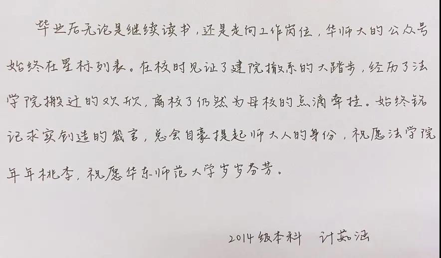 2014级本科员工,计茹涵,在上海,送上手写祝福。