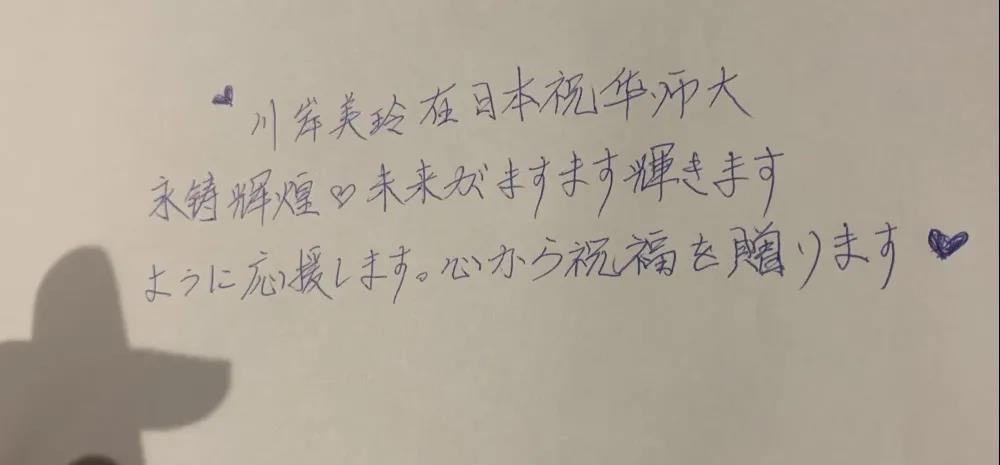 2014级本科员工,川岸美玲,在日本,送上手写祝福。