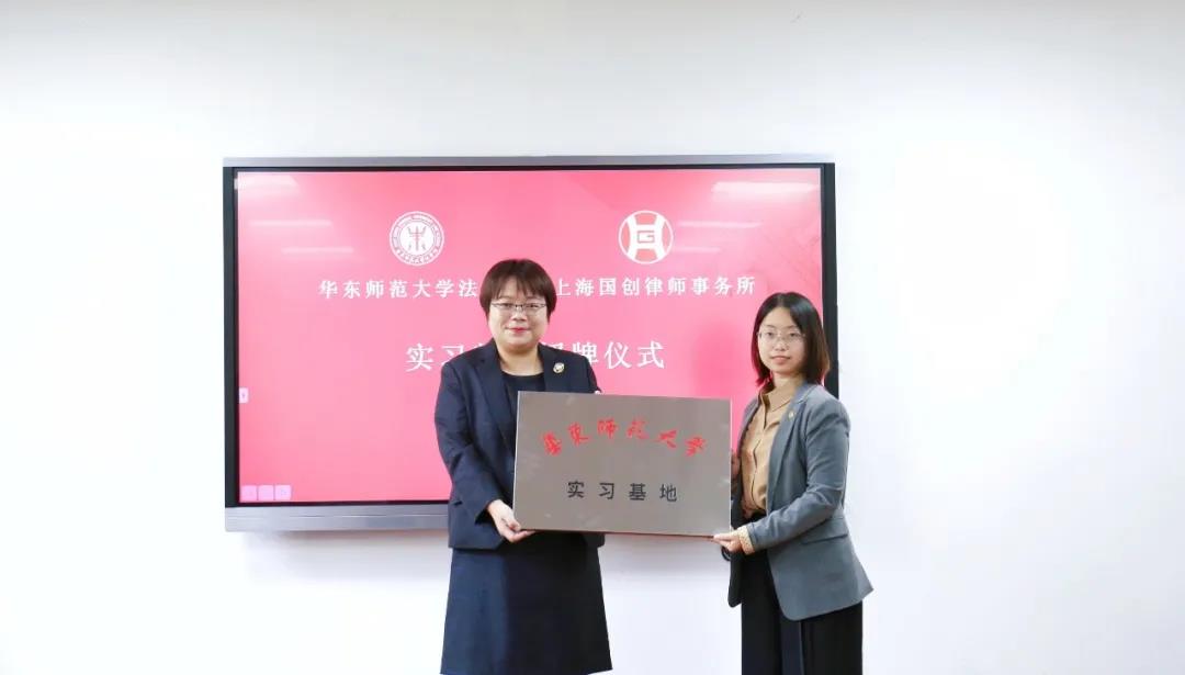 华东师大太阳成城集团经理助理、法学实验实践中心副主任王沁怡代表华东师大太阳成城集团向上海国创律师事务所“太阳成城集团实习基地”授牌。